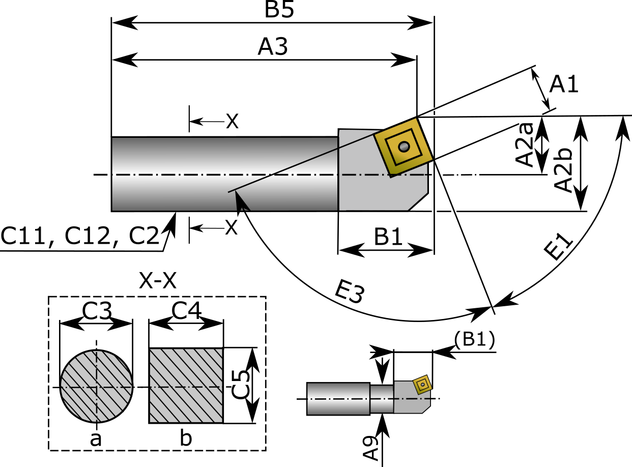 Werkzeugköpfe zum Drehen, innen