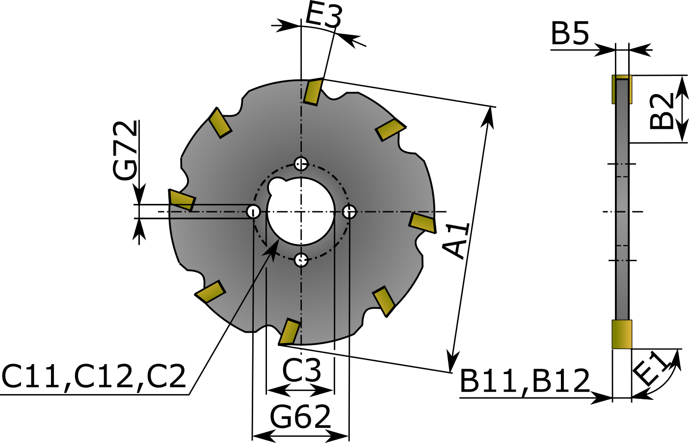 Radienfräser, einreihig